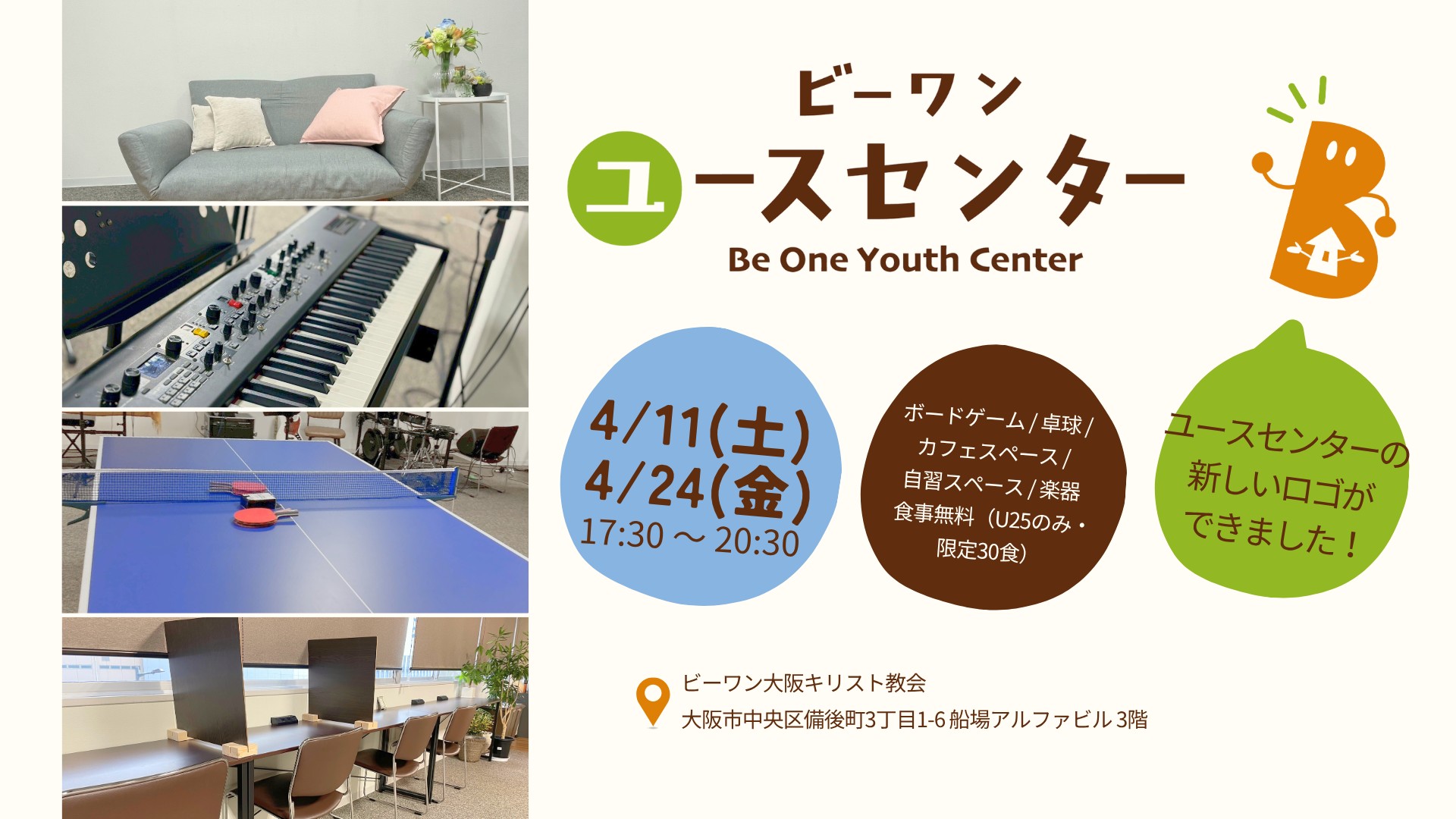 Be One Osakaでは、本町・北摂・大阪南・ZOOMで毎週それぞれ礼拝を行っております、どちらも初めての方を歓迎いたします。ぜひお気軽にお越しください。